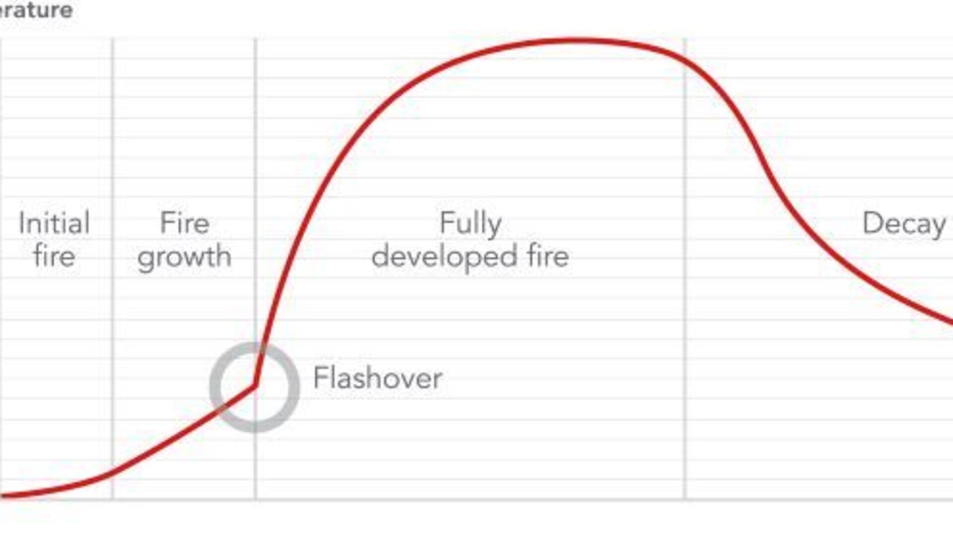 A fire will continue to burn until actively extinguished or until the combustibles or oxygen is exhausted. If not otherwise extinguished or exhausted, the fire will continue burning and at a certain point will suddenly and very rapidly expand from a small, localised fire to one filling the entire room. This transformation, which occurs in seconds, is called “flashover”.